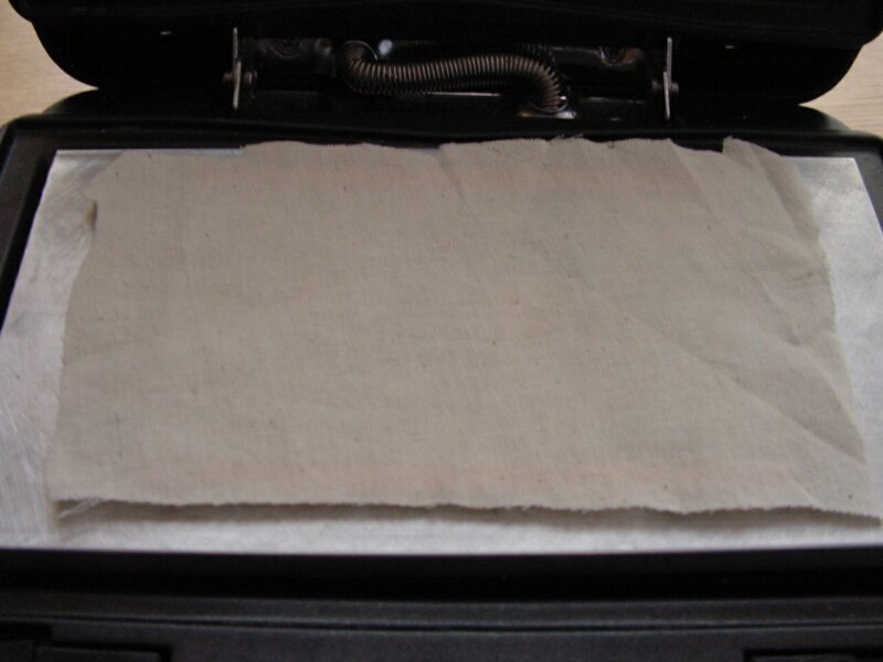 Ein Stück Leinen darüber (z. B. aus einer Tragetasche ausgeschnitten) |